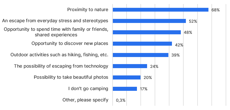According to FMI’s market analysis, the kings of glamping are France, with more than 8,000 luxury campsites, followed by the USA, UK, Canada, Spain, Japan, Germany, China, and Australia. In the Czech Republic, glamping experienced a boom in 2020 during the outbreak of the Covid-19 pandemic, when people started building their own properties away from the crowds but still looked to incorporate creature comforts. There are currently about 600 campsites here in the Czech Republic, offering a variety of accommodation options from tents and caravans to cabins and bungalows. The CS Building Savings Bank Burinka asked what people like about camping.