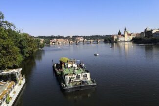 Z holešovického přístavu se Prvok po vodě dostal až do centra! Za tři hodiny proplul po Vltavě třemi plavebními komorami a okolo 11 hodiny jsme jej ukotvili na Střeleckém ostrově. Z oken Prvoka čeká návštěvníky dech beroucí výhled na Národní divadlo a Karlův most.